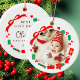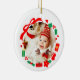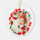 Celebre o seu primeiro Natal com esta decoração de fotos encantadora, com uma imagem encantadora do seu bebê aninhado dentro de uma vibrante coroa vermelha e verde. Adorado com presentes charmosos, um arco de fita festiva, e sotaques ocos, esse saúdo captura a magia da estação enquanto cria uma memória duradoura. Perfeito por pendurar na árvore ou exibir em uma manta, este ornamento é uma adição emocionante ao seu decoro de feriado e um dom precioso para os próximos anos.