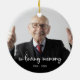 Honre o seu amado com um ornamento personalizado do memorial fotográfico. Esta lembrança única é o presente perfeito para você, família ou amigos para prestar homenagem ao seu amado. Esperamos que seu memorial traga paz, alegria e memórias felizes. Cite " Em Memória Adorável. "Personalize com fotos de alguém que gosta favorito e nomeie. O pedido é de dois lados, você pode fazer duas fotos favoritas, uma em cada lado. Personalize o nome na frente e as datas na parte de trás. Veja 'personalizar esta modelo' para alterar a foto e o nome. Uma Celebração da Vida. COPYRIGHT © 2020 Judy Burrows, Black Dog Art - Todos os direitos reservados
