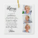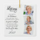 Honre o seu amado este Natal com um ornamento personalizado de memorial fotográfico. Este enfeite memorial único de natal é o perfeito guardião para prestar homenagem aos seus entes queridos. Citação " na memória amorosa... Estou no Céu para o Natal, então o que devo fazer? Eu vou para a terra para gastá-lo com você. Então me salve um assento, apenas uma cadeira confortável, você pode não me ver, mas eu estarei lá." Personalize com as 3 fotos, nome e ano de alguém que amava preferidos. Personalize com nomes, maravilhosa homenagem ao pai, mãe, avós, tias, irmãs e você pode incluir animais de estimação ou um cachorro amado. COPYRIGHT © 2020 Judy Burrows, Black Dog Art - Todos Os Direitos Reservados. Natal No Céu Adorando Memória 3 Foto Memorial Cerâmica