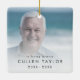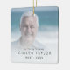 Este chic na memória amorosa, o ornamento cerâmico fotomemorial do avô é a perfeita decoração memorial da árvore de Natal. A simples design apresenta uma tipografia negra minimalista clássica com um toque rústico. Este ornamento de manutenção diz "na memória amorosa". Personalize seu ornamento de dois lados com uma foto do seu avô, pai, irmão, tio, sobrinho ou amigo, o nome e as datas de seu amado.