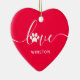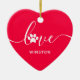 Guarde a memória do seu animal de estimação com este ornamento personalizado em forma de coração. Com um fundo vermelho com uma pegada branca e a palavra "amor", este ornamento é uma bela maneira de homenagear seu amigo peludo. Personalize com o nome do seu animal de estimação para um presente único. Adicione uma foto do seu animal de estimação no verso para torná-lo ainda mais especial.