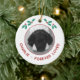 Celebre o seu amor pelo seu animal de estimação no Natal com este charmoso enfeite de foto personalizado. Adicione a sua própria foto e altere qualquer texto para personalizar. Com ramos de azevinho bonitos e texto moderno em vermelho festivo, ele exibe lindamente a sua fotografia favorita do seu cão, tornando-o um souvenir perfeito para amantes de animais de estimação. Pendure-o na sua árvore para adicionar um toque especial à sua decoração de Natal e preserve as memórias que vocês criaram juntos.