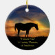 Um lindo ornamento memorial de cavalos. Um cavalo perfeitamente silenciado em um lindo pôr do sol e as palavras "Forever Free" e em memória amorosa do nome do cavalo. Usei o Sundance, o cavalo da minha irmã. Uma bela maneira de manter esta bela alma perto do seu coração. Você pode mudar a fonte, o texto para refletir o que quiser.