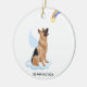 Celebre o seu melhor amigo com um ornamento personalizado do memorial do anjo do German shepherd. Este ornamento memorial de natal German shepherd apresenta um cão German shepherd de aquarela com asas de anjo e um arco-íris e estrela dourada. Personalize com nome frontal, remonta. Este ornamento memorial do German shepherd é uma lembrança perfeita do cão ou uma lembrança de natal de estimação. COPYRIGHT © 2022 Judy Burrows, Black Dog Art - Todos Os Direitos Reservados. German shepherd Angel Personalize Pet Dog Memorial Cerâmica
