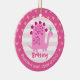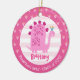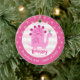 Este enfeite de foto personalizado é uma lembrança maravilhosa para o seu graduado favorito da pré-escola ou para os membros da família. A frente ostenta uma visualização caprichosa e divertida de um adorável, ousado, kawaii, dinossauro rosa, e uma tipografia manuscrita divertida sobre um fundo de círculo listrado de rosa claro e branco. Um padrão de coroa rosa adorável sobreposto a um rosa empoeirado está na borda, enquadrando a ilustração. No verso está a foto de sua escolha. Personalize o texto personalizado com o nome do graduado e o ano da turma. Personalize o texto personalizado com o nome do graduado e uma mensagem especial. Escolha entre materiais de estrutura de cerâmica, metal, vidro ou metal premium e um formato circular ou quadrado. Convites, faixas, pratos de papel e guardanapos, adesivos e outros itens de formatura também estão disponíveis nesta coleção especial e legal. Garantido para preservar as memórias queridas desta ocasião especial!