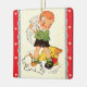 Ornamento De Cerâmica Menino Antigo Salvando um Gatinho de Cachorrinhos