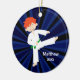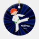 Personalize facilmente isto caçoa enfeites de natal das artes marciais. Uma ilustração de cabelo vermelha bonito do menino, vestindo um uniforme e um cinto verde brancos. Aperfeiçoe para todo o pouco estudante do karaté ou do taekwondo. ANTES de colocar sua ordem -- Contacte-nos para a COR LIVRE MUDA (cor da correia, cor do cabelo, cor do fundo, etc.)