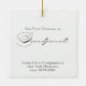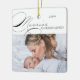 Mais feliz como o ornamento de fotos de Natal de Avós, que você pode personalizar com sua foto favorita e texto personalizado. Design de tipografia elegante com caligrafia brilhante e fácil de editar para avós novos ou estabelecidos. Este ornamento de feriado é escrito com Merrier como Avós de um lado e texto editável do outro. O texto da amostra diz "nosso primeiro natal como avós... amando a vida como avós a [nome] desde [data]". Todo o texto, exceto Merrier e Avós, é editável.