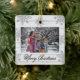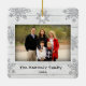 Festive Merry Christmas photo ornament with a cute snowflakes pattern frame. Personalize with family name and year.