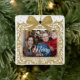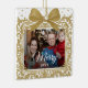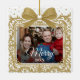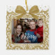 Merry Christmas Elegant Bow Present Photo Collage Ceramic Ornament | Gold Luxe Personalized Picture Keepsake