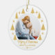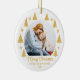 Celebrate Merry Christmas with a modern and simple keepsake Made to remain a beautiful memory. This gold and white ornament is perfect for a family photo, featuring elegant christmas trees and stars on a clean white background. Personalize it with a photo, name, greeting and year, an ideal gift for a Merry As A Mother, sibling, or loved one.