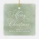 Ornamento De Cerâmica Merry Christmas Photo Green Script Simple
