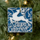 Ornamento De Cerâmica Merry Christmas Reindeer Silhouettes Snowflake