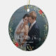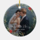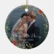 Ornamento De Cerâmica Merry & Married Elegant Script Wedding Photo