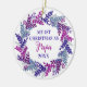 Meu Primeiro Natal como Papai Ano Purple Wreath Cerâmica Ornament Um Enfeites de natal elegante de Padre ou Avós que você pode personalizar para amigos e família para o feriado. Dar-lhes um presente de lembrança de guardiã que possam celebrar o seu primeiro Natal especial como Papa.