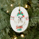 Um lindo cão maltês branco veste um chapéu de Papai Noel vermelho e verde em frente a cordas de miçangas de Natal vermelhas e verdes em ambos os lados deste ornamento. Na parte inferior estão dois campos de texto em vermelho e verde correspondentes ao seu próprio texto. A parte traseira tem a mesma imagem com um terceiro campo de texto em vermelho. Perfeito para quem é dono de um malteses adorável!