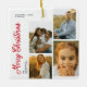 Ornamento De Cerâmica Minimal Merry Christmas Script Family 4 Photos