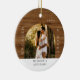 Celebrate your engagement with this elegant mid-century modern ornament, featuring a stylish faux brown wood and white two-tone design. A bold white stripe along the bottom highlights the couple’s name, while a minimalist square frame displays your favorite engagement photo. With one photo on each side, this ornament is a beautiful double-sided keepsake. The phrase “Engaged & Merry”, the year, and your names are displayed in a clean, modern font around the image – perfect for adding a personal touch to your holiday decor or gifting to a newly engaged couple. Design and Layout by ©Moodthology Papery