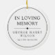 O ornamento memorial em um design minimalista em preto e branco onde você pode adicionar uma foto do seu amado de um lado, e seu nome e anos vivendo do outro lado.