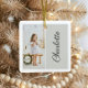 Um belo e simples, mínimo e moderno ornamento de fotos e nomes personalizados para adicionar um toque personalizado à árvore de feriados de suas famílias. O ornamento apresenta o layout vertical de fotos de retrato com fundo simples de cinza de luz e personalizado com o nome na frente e no verso para que você exiba duas fotos.