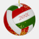 Este adorno bonito de vôlei apresenta a imagem realista de um vôlei que tem painéis vermelhos, verdes e brancos e uma aspersão de minúsculas estrelas falsas de ouro, sobre as quais você pode personalizar o nome do jogador na frente e no ano comemorativo no verso - por katz_d_zynes