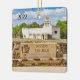 Ornamento cerâmico de 2 lados, único, que inclui a Missão San Juan com sinalização de entrada a cores e preto e branco. Alterar a data do ano para a data atual.
