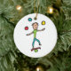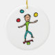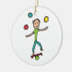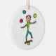 Manipulando três bolas e equilibrando em um conselho do bola do rola - um juggler do circo com estilo e habilidades.
