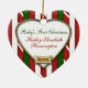O adorável desenho personalizado de primeira foto de Natal de Baby. A frente tem um lugar para sua própria foto carregada e o ano, enquanto a parte de trás está pronta para você personalizar com o nome e o ano do bebê também. Faz o presente perfeito para os avós dos novos pais e será um tesouro ano após ano. (Também faz uma ideia maravilhosa do pingente!)