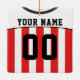Fácil de editar futebol / futebol / ornamento de festas de camisa esportiva, basta usar as caixas à direita da imagem para inserir sua própria escolha de nome e número. Este design de camisa tem listras verticais vermelhas e cintas pretas. A cor de fundo pode ser alterada, basta clicar em 'PERSONALIZAR'. Se você quiser um design personalizado feito em um esquema de cores específico, entre em contato comigo usando o link 'Contate este Designer' abaixo. Perfeito para qualquer feriado, seja Natal, aniversário, Hanukkah, ou qualquer celebração! Ideias de presentes de excelente para o fã ou jogador esportivo em sua vida.