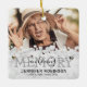 Enfeites de natal personalizado de tributo memorial com uma foto tesourada do seu ente querido, um design cardíaco moderno padrão de mármore, o ditado "na memória amorosa", seu nome e datas.