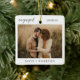 Ornamento De Cerâmica Modern Script Rustic Engagement Photo Keepsake