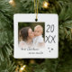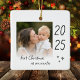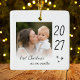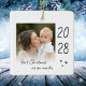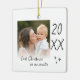 Modern "first Christmas as an auntie" ceramic ornament with a simple design featuring the year and a custom photo. Double-sided design.
