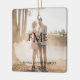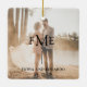 Enfeites de natal contemporâneo e moderno com um simples e mínimo de designs com seu monograma inicial junto com seus nomes em letras negrito sobre sua foto favorita de casamento. Todos os elementos de design são pretos e podem ser alterados na ferramenta de edição de design. Este ornamento faz um presente de excelente para um casal recém-casado para o seu primeiro Natal casado.