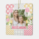 Ornamento De Cerâmica Moldura de Fotos Floral e Xadrez Dia das Mães