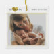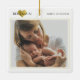 A soft modern keepsake for new parents, this white and gold tree ornament features a simple gold heart behind the baby’s name, a clean serif font for the text, and a large photo template photo, that you can replace with your own favorite image of mom and newborn; add your baby’s name and date of birth to create a personalized heirloom that looks beautiful on the Christmas tree year after year and makes a sweet gift for grandparents and family.