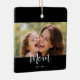 Ornamento De Cerâmica Mom Established Black White Script Photo