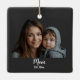 Mom Established Photo Gift ornament. Minimal Elegant Black Script Mom Typography - Add your photo custom "Est" established year when your first child was born. Add additional years for each child. Celebrate the year(s) you became a mom with this classic ornament featuring bold white typography that proudly reads “Mom, Established in 20XX.” Perfect for moms of all ages, this minimalist design is both modern and timeless, making it an ornament you’ll love to see on your tree or somewhere in your home to enjoy every day.