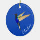Ornamento personalizado com um beija-flor Coronet em um fundo azul. Basta adicionar seu nome e mensagem. O estilo e o tamanho da fonte podem ser alterados clicando em "personalizar mais".