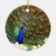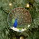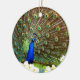 Tela de pavão macho fechado (Pavo cristatus - Pird) com flores em primeiro plano