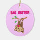 Uma macaca bonita com uma flor rosa balançando na cauda de um galho e um texto cor-de-rosa lê "Big Sister" em T-shirts irmãs grandes, correntes chave, cartões, autocolantes, sacos de tote, ímãs, mousépads, travesseiros e outras irmãs grandes e presentes!