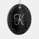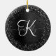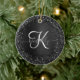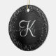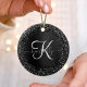 Ornamento De Cerâmica Monograma de brilho preto personalizado
