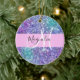Ornamento De Cerâmica Monograma de brilho roxo, azul e verde brilhante