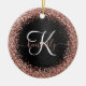 Personalize facilmente esse design de ornamento cerâmico elegante, de tendência, com brilho bonito de ouro rosa em um fundo metálico escovado preto.