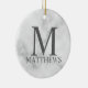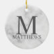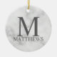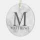Ornamento De Cerâmica Monograma e Nome Personalizados do Marble Branco