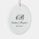 Ornamento De Cerâmica Monograma Elegante de Script Branco e Preto do ete