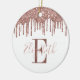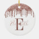 Ornamento De Cerâmica Monograma Festivo, Rosa Dourado Glitter