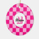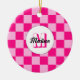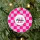 Verificado o Enfeites de natal geométrico do retrô rosa-claro-quente. Pares checados retro padrão geométrico Presente de Feriado para ela. Verificador moderno rosa-quente do azulejo Vintage. Personalize com seu nome e inicial personalizados.