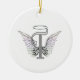 Ornamento De Cerâmica Monograma inicial da letra T com asas & halo do