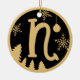 Ornamento De Cerâmica Monograma - Letra N Preta Dourada