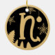 Temido no Natal, letra de monograma N, em ouro sobre fundo preto. O preto e o ouro podem ser modificados clicando no link 'personalizar mais'. Letra branca N com floco de neve e pinheiros.